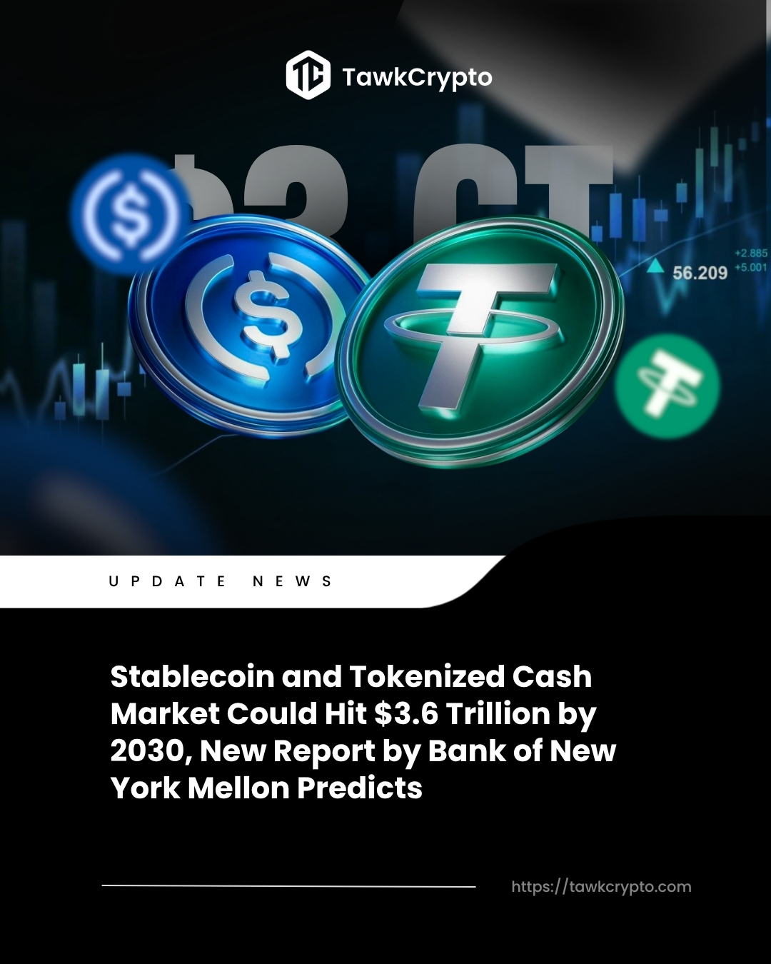 Stablecoin and tokenized cash markets could hit $3.6 trillion by 2030, a new report by Bank of New York Mellon predicts.